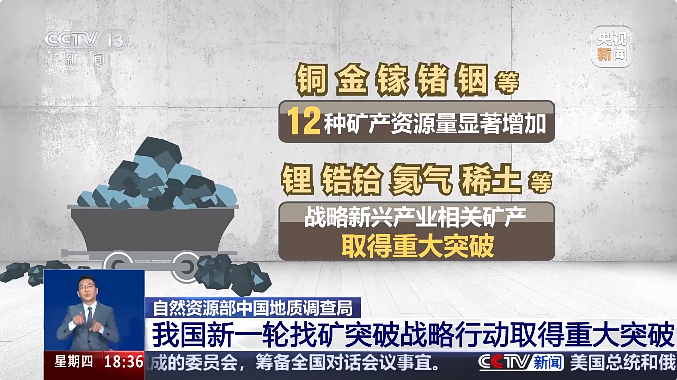 鋰、鋯、鉿、氦氣、稀土等戰(zhàn)略新興產(chǎn)業(yè)相關(guān)礦產(chǎn)取得重大突破。