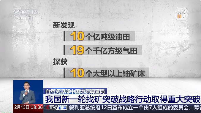 新一輪找礦突破戰(zhàn)略行動實施以來,各地聚焦大宗緊缺和戰(zhàn)略性新興產(chǎn)業(yè)礦產(chǎn),圍繞重點成礦區(qū)帶和重要含油氣盆地,實現(xiàn)了一系列重大找礦突破,西部地區(qū)新增一批能源資源基地,中東部老資源基地資源基礎(chǔ)進一步夯實。