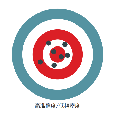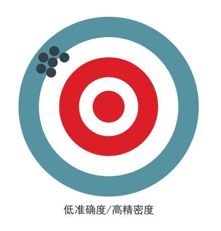 精密度是可重復(fù)性的一種度量,或者說一個檢測結(jié)果與另一個檢測結(jié)果的相近程度。準(zhǔn)確度表明所獲得的結(jié)果是否準(zhǔn)確地反映了實際情況(接近真值)。當(dāng)然,我們希望任何分析技術(shù)都能提供優(yōu)質(zhì)的精密度和準(zhǔn)確度。