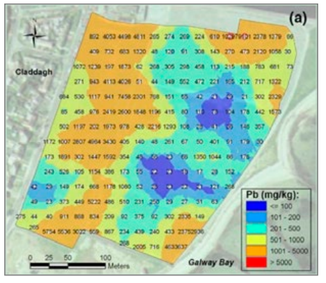 圖1. 在實施土壤修復(fù)項目的過程中采集到的樣本。左圖顯示為較差的采樣策略:采集的樣本數(shù)量不足,可能會出現(xiàn)大量的錯誤。右圖為正確的采樣方式:采集足夠數(shù)量的樣本,以確保場地各個區(qū)域的土壤都被檢測到。