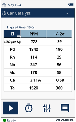 在進行均質(zhì)化之前,回收行業(yè)應(yīng)使用Vanta XRF分析儀對相同類型的材料進行分揀和分離??煞譃槿齻€或四個等級,例如氧傳感器、三元催化器、二元催化器和柴油微粒過濾器(DPF)。為改進分類流程,可使用“偽元素”功能在分析儀數(shù)據(jù)庫中定義具體的等級。