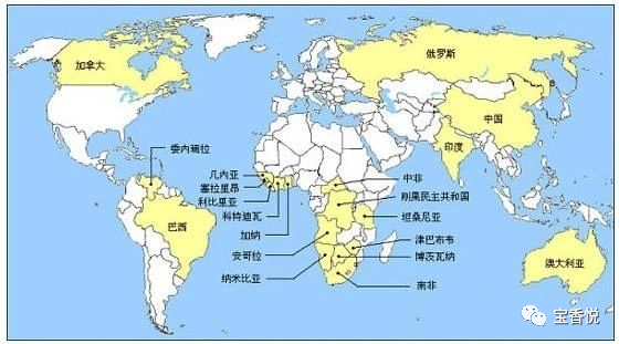 南亞和南美、非洲是彩色寶石的主要產(chǎn)地,特別是緬甸、巴西、斯里蘭卡、馬達(dá)加斯加、俄羅斯、加拿大等國(guó),擁有數(shù)種寶石的頂級(jí)礦藏,占世界寶石資源分布總量的95%以上。著實(shí)令人羨慕,而資源比較貧乏的區(qū)域有歐洲、格陵蘭、北美東部和西非。