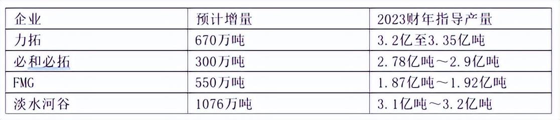 供應端,對力拓、必和必拓、淡水河谷、FMG四大寡頭的2023財年鐵礦石產量指導情況來看,預計2023年四大礦山鐵礦石產銷量不減反增,增加約2600萬噸。根據(jù)發(fā)往中國比例估算,對國內增量約為2000萬噸。