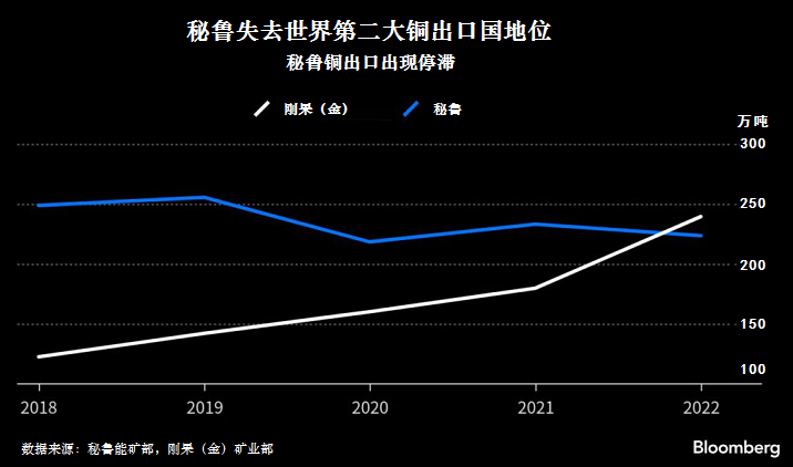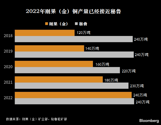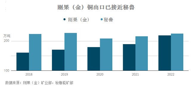 最近的一份報(bào)告認(rèn)為,未來幾年,由于秘魯產(chǎn)量停滯,剛果(金)將占據(jù)全球第二大產(chǎn)銅國(guó)的位置。鄰國(guó)智利仍然是世界最大銅生產(chǎn)國(guó)和供應(yīng)國(guó)。彭博通訊社報(bào)道,2022年剛果(金)銅出口量為240萬噸,而秘魯銅出口量為220萬噸。