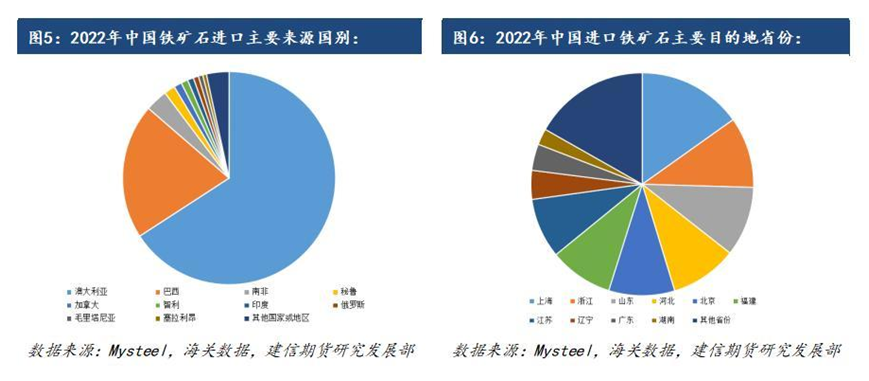 近年來,我國進口塊礦和已燒結(jié)的鐵礦砂及其精礦占比整體呈現(xiàn)波動向下的趨勢;而鐵精粉的占比變化正好與塊礦和已燒結(jié)的鐵礦砂及其精礦相反,近年來鐵精粉占比除個別年份外,整體上逐步上升。