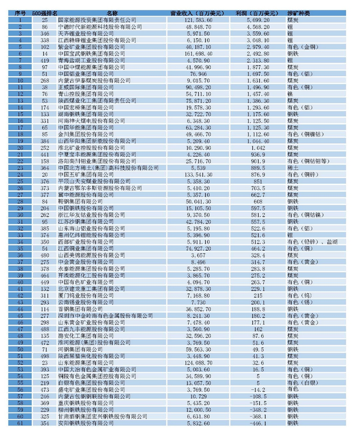 表 2023年《財富》中國500強盈利榜·礦企篇(不完全統(tǒng)計)