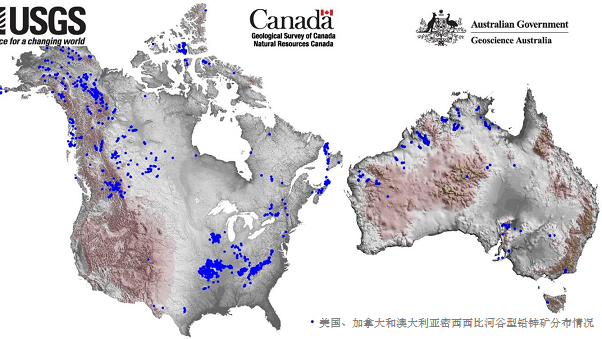 這些數(shù)據(jù)層也能用于人工智能分析技術(shù)比如機器學習。由加拿大地質(zhì)調(diào)查局主導(dǎo)的關(guān)鍵礦產(chǎn)填圖計劃(CMMI, Critical Minerals Mapping Initiative)團隊已經(jīng)利用這些數(shù)據(jù)繪制澳大利亞、加拿大和美國某種鋅礦的潛力圖,除鋅外,這些礦床還含有鎵和鍺。
