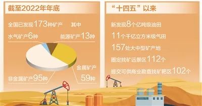 礦產(chǎn)資源是經(jīng)濟(jì)社會(huì)發(fā)展的重要物質(zhì)基礎(chǔ),礦產(chǎn)資源勘查開(kāi)發(fā)事關(guān)國(guó)計(jì)民生和國(guó)家安全。截至2022年年底,全國(guó)已發(fā)現(xiàn)173種礦產(chǎn);2022年,我國(guó)近四成礦產(chǎn)儲(chǔ)量均有上升……日前發(fā)布的《中國(guó)礦產(chǎn)資源報(bào)告(2023)》顯示,我國(guó)推進(jìn)實(shí)施新一輪找礦突破戰(zhàn)略行動(dòng)效果顯著。