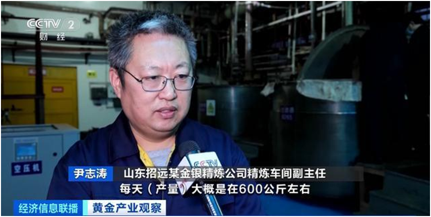 據(jù)央視財經(jīng)29日實地探訪,因為今年黃金市場價格比較高,山東招遠(yuǎn)地區(qū)金礦基本滿負(fù)荷運(yùn)行。山東招遠(yuǎn)某金銀精煉公司精煉車間三班24小時連續(xù)不斷生產(chǎn)。每天產(chǎn)量大概600公斤,較去年每天大概增加100公斤。因為價格好,入給交割庫直接就賣了。一塊3公斤的黃金大約140萬元,每天600公斤的黃金價值高達(dá)2.8億元左右。