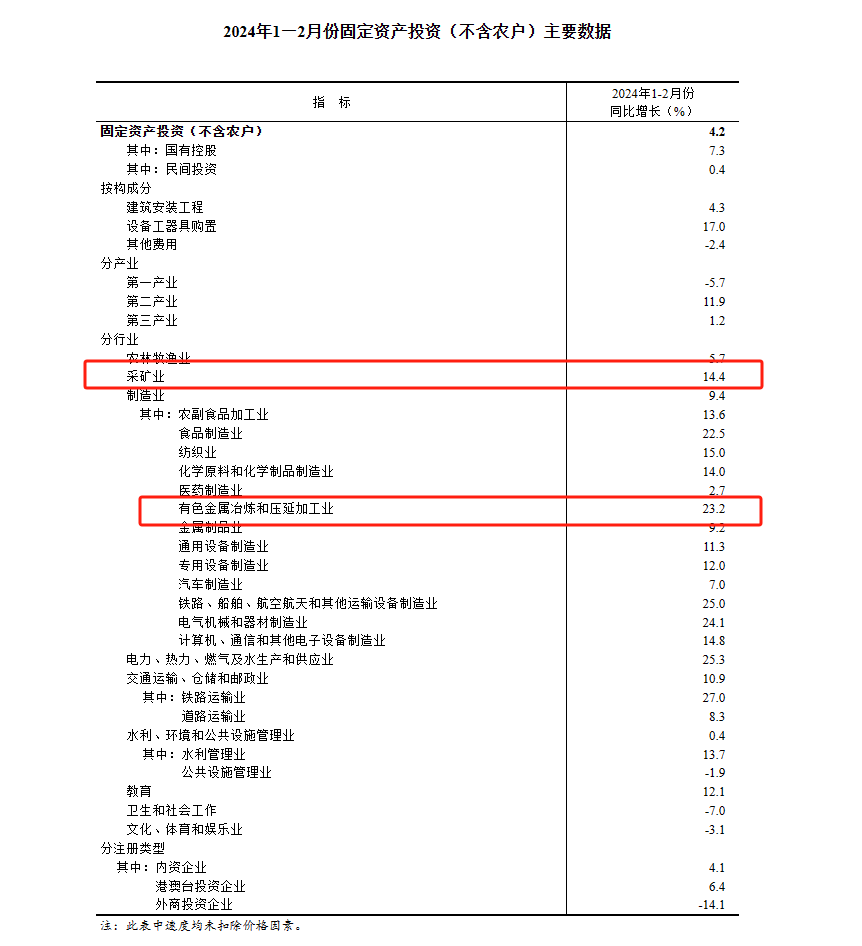 第二產(chǎn)業(yè)工業(yè)投資同比增長11.9%。其中,采礦業(yè)投資增長14.4%。