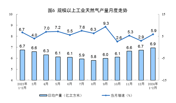 天然氣生產(chǎn)增速加快,進(jìn)口保持較快增長。1—2月份,規(guī)上工業(yè)天然氣產(chǎn)量417億立方米,同比增長5.9%。進(jìn)口天然氣2210萬噸,同比增長23.6%,增速比上年12月份放緩0.1個百分點(diǎn)。