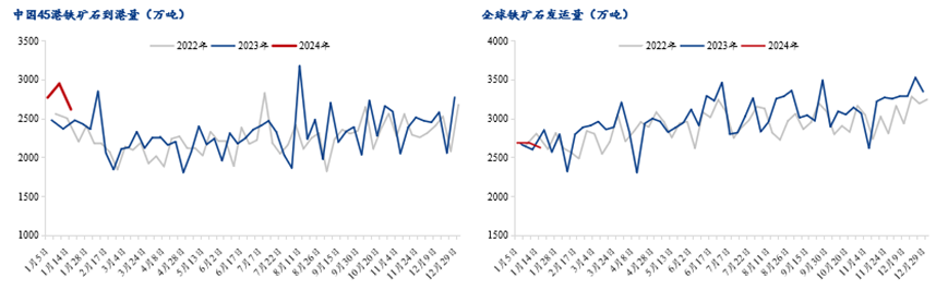 根據Mysteel全球鐵礦石發(fā)運量數據顯示,近期由于臺風影響,部分礦山港口檢修,最新周度全球鐵礦發(fā)運總量大幅回落。上周(4.8-4.12)全球發(fā)運量周值為3245.3萬噸,周環(huán)比減少142.5萬噸。但今年累計發(fā)運情況看,全球鐵礦石發(fā)運累計同比增量為1512.5萬噸,其中巴西累計同比增量為1254.8萬噸,非主流累計同比增量為1284.5萬噸,澳洲則表現(xiàn)為累計同比減少1026.8萬噸。受天氣因素影響,預計近幾周全球鐵礦石發(fā)運量有所下降,待澳洲颶風擾動暫告一段落后,預計發(fā)運水平還會有顯著增加。到港量與全球發(fā)貨量數據相似,根據Mysteel45港鐵礦石到港量數據顯示,上周(4.8-4.12)值為2437萬噸,周環(huán)比減少4萬噸。今年以來,45港鐵礦石到港量累計同比增加1994萬噸,其中澳洲累計同比減少1120萬噸,巴西累計同比增加1836萬噸,非主流累計同比增加1278萬噸。