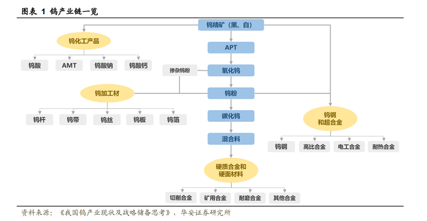 鎢是極其稀缺和不可替代的戰(zhàn)略性資源,具有高熔點、高硬度、高密度、導電性和導熱性良好、膨脹系數(shù)較小等性質。鎢制造的硬質合金被譽為“工業(yè)的牙齒”,廣泛應用于軍工、航天航空、機械加工、冶金、鉆井、礦山工具、電子通訊、建筑等領域。而鎢絲是照明、電子、光伏等行業(yè)的關鍵材料。