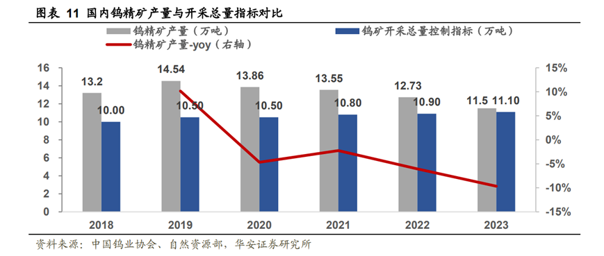 1999年起,我國暫停了鎢礦開采許可證的發(fā)放,2002年我國開始正式對鎢開采總量進行控制,有效的抑制住了開采量增長過快的問題,也強化了我國鎢資源的定價地位。