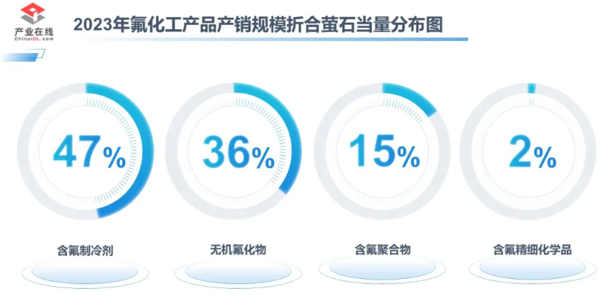 2023年含氟制冷劑產(chǎn)銷規(guī)模折合螢石當(dāng)量約235.7萬噸,消費占比47%。含氟制冷劑應(yīng)用于冰箱、空調(diào)、冷庫等制冷設(shè)備,另外部分含氟制冷劑單質(zhì)也是含氟高分子材料的主要原材料。