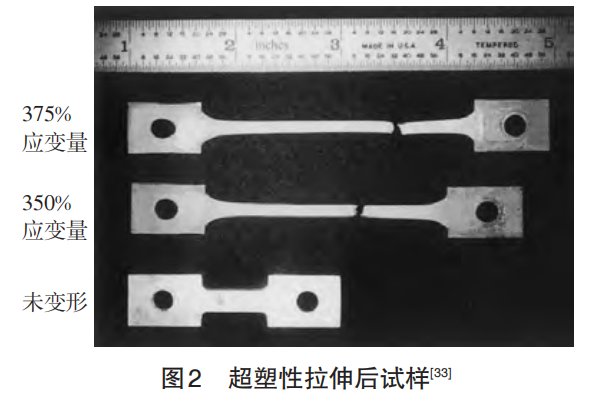TROEGER等對6000系合金的超塑性研究表明,500 ℃以上時(shí)合金表現(xiàn)出超塑性。在 540 ℃應(yīng)變速率為2×10-4~5×10-4 /s時(shí),應(yīng)變速率敏感性達(dá)到最大值0.5 /s。應(yīng)變速率為5×10-4 /s時(shí)合金的單向拉伸延伸率最大達(dá)375%,對應(yīng)的流變應(yīng)力為4.7 MPa,如圖2所示。周義等用鋁合金以超塑性成形方式進(jìn)行了汽車前擋泥板成形試驗(yàn),在成形溫度控制在450~500 ℃、最大脹形壓力達(dá)到0.42 MPa的條件下,試驗(yàn)取得成功,整個(gè)成形時(shí)間為 30~60 min。梁繼業(yè)等以 5083 鋁合金為研究對象對車門的鋁合金外板的正反脹超塑性成形工藝進(jìn)行了研究,在480 ℃和應(yīng)變速率為 1×10-3 /s 條件下,最大伸長可達(dá)到242%。雖然超塑性成形時(shí)間比一般成形工藝時(shí)間長,但在成形時(shí)材料塑性流動(dòng)的阻力非常小,即使是復(fù)雜件也可以一次成形,因而其應(yīng)用前景非常廣泛。