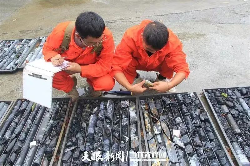 省地礦局101地質(zhì)大隊技術員野外工作中該項目是省自然資源廳下達的2024年新一輪找礦突破戰(zhàn)略行動項目之一,目標是充分利用貴州重晶石成礦規(guī)律與成礦預測研究重大科研成果,通過鉆探,尋找地下深部埋藏的重晶石礦體。在項目負責人李永剛和技術負責人羅邦良看來,每一次向地球深部的鉆探,都可能叩開一扇新世界的大門。這一次,他們成功了。那是7月的一個傍晚,經(jīng)過連續(xù)多日作戰(zhàn),技術員們耐心守在鉆井平臺上,眼看著鉆機突突地探向地層深處,大家都屏氣凝神,只為等待著鉆孔見礦一刻的出現(xiàn)。