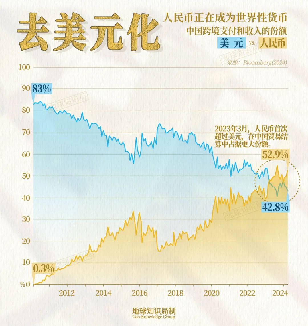 美國(guó)憑借其超級(jí)大國(guó)的綜合實(shí)力,維系金融霸權(quán)長(zhǎng)達(dá)七十多年。如今中國(guó)已成長(zhǎng)為世界第二大經(jīng)濟(jì)體,越來(lái)越多的國(guó)際貿(mào)易使用人民幣來(lái)結(jié)算。