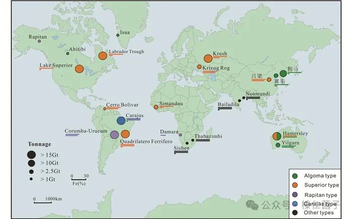 全球著名的前寒武紀BIF鐵礦床位置及品位,