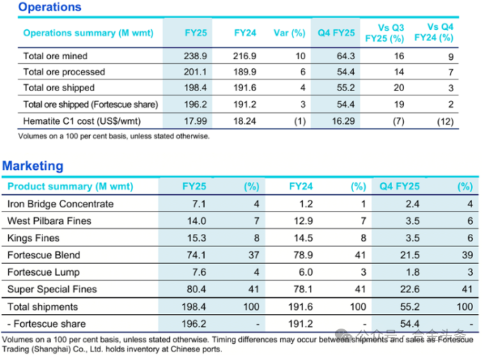 7月24日,澳大利亞礦業(yè)公司福德士河發(fā)布2025年第二季度(2025澳大利亞財(cái)年Q4)運(yùn)營(yíng)報(bào)告,報(bào)告顯示:
