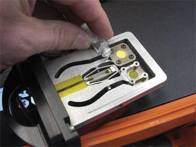 已獲得專利的Terra便攜式X射線衍射儀樣本振動(dòng)艙為用戶免除了這個(gè)步驟。只需15 mg的樣本,振動(dòng)艙的對(duì)流傳熱過(guò)程就可以為儀器的光學(xué)設(shè)備提供晶粒結(jié)構(gòu)的許許多多的衍射方向。這樣就可生成非常理想的X射線衍射圖案,而且基本上不會(huì)出現(xiàn)使用傳統(tǒng)的準(zhǔn)備方式時(shí)會(huì)遇到的擇優(yōu)方向影響的問(wèn)題。得益于獨(dú)特的粉末處理系統(tǒng)、非機(jī)械性角度計(jì),以及少的復(fù)雜性移動(dòng)部件,TERRA便攜式X射線衍射儀特別適用于那些對(duì)儀器的便攜性和使用的方便性要求高的野外應(yīng)用。